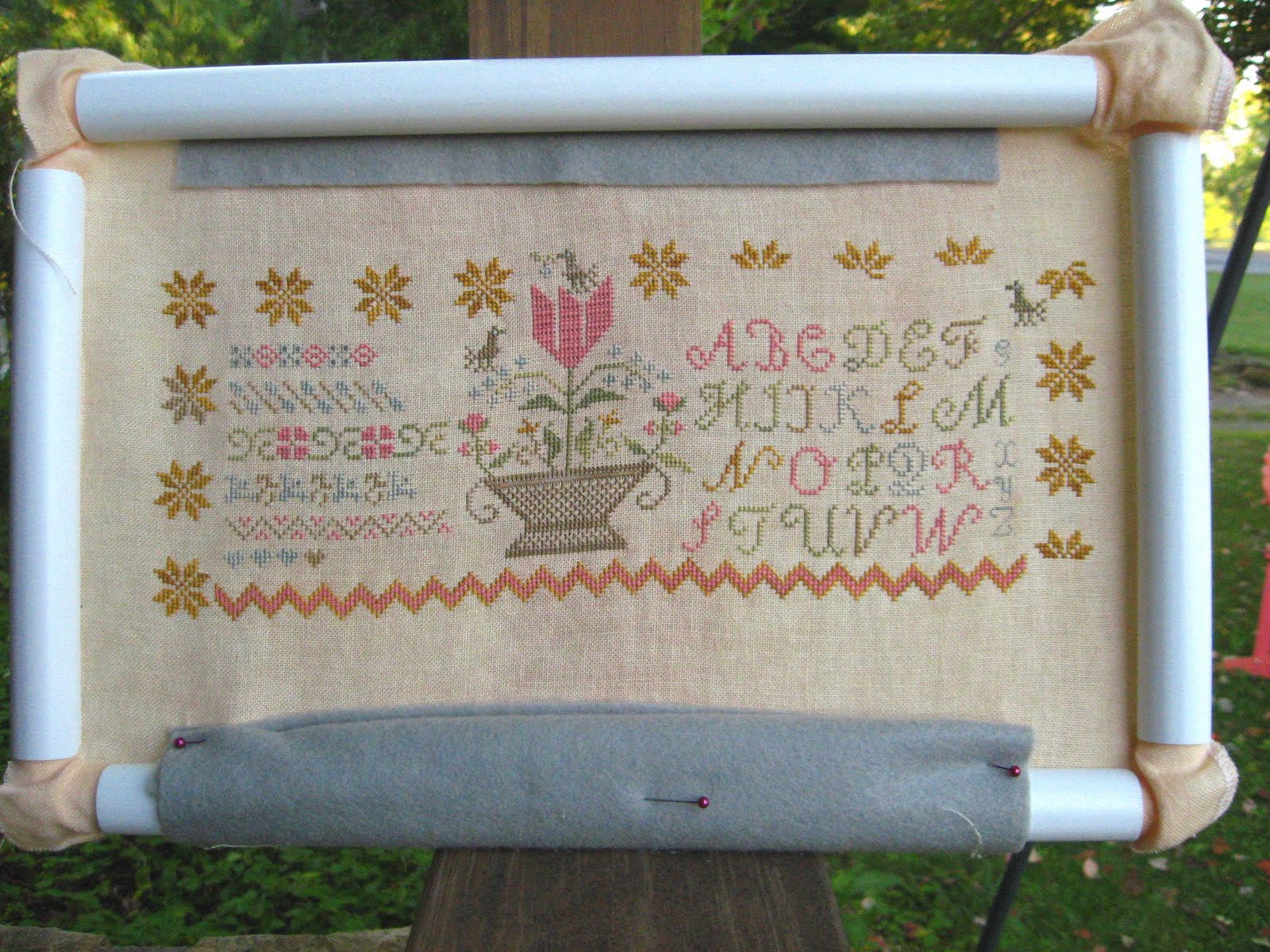 Love your Summer Basket! I'm working on this one too at the moment and I'm with you on the stars. I've gone with putting a basting line in as I was driving myself crazy with counting and counting again and I figured I'd be sure to make a mistake somewhere! I also need to start stitching more of them so I'm not left with lots to do when the rest of the stitching is done. You'll have this one finished is no time!