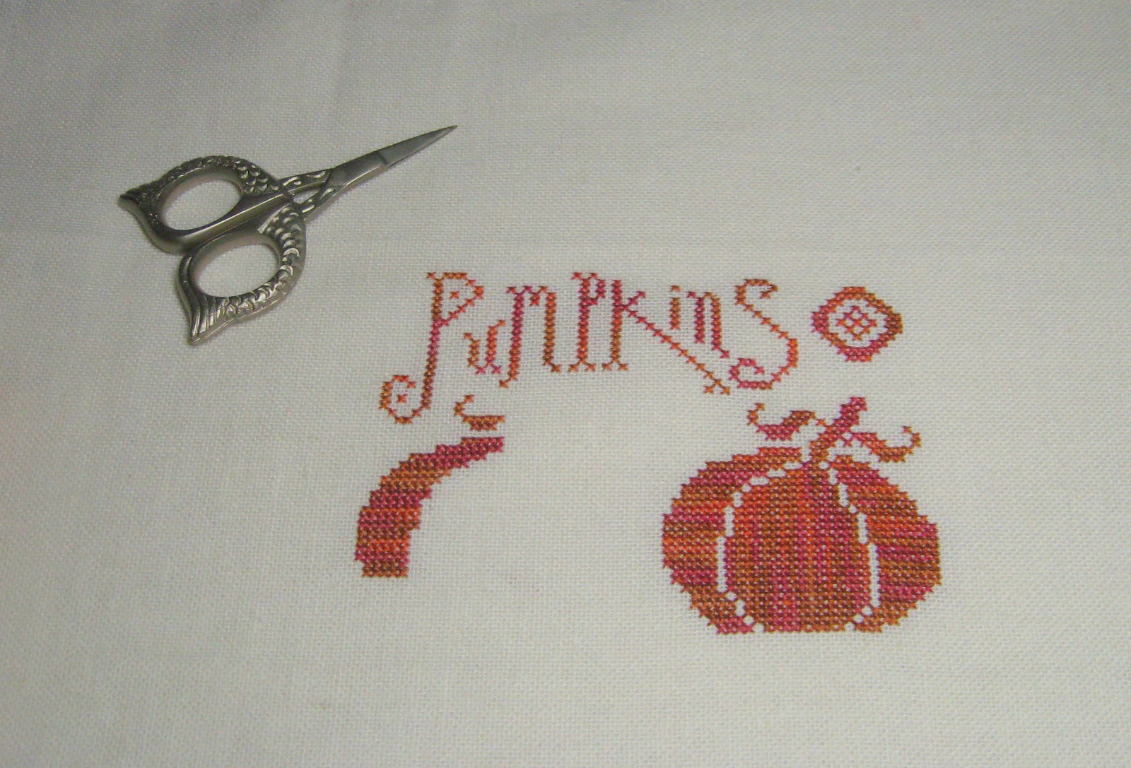 What a nice variety of pieces everyone was working on! I really love that little over one black kitty in the pumpkin--so, so cute. I've thought about stitching it myself, but I'm not sure my eyes would hold up :)