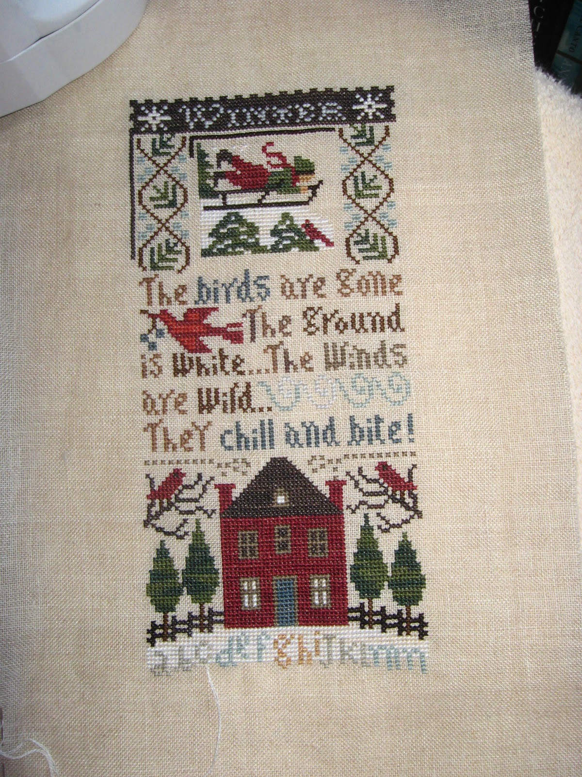 ReplyDeleteYour Winter Sampler is cute - I love the red house and the red birds! I enjoy stitching with friends too, though I have to say I generally don't get much done!