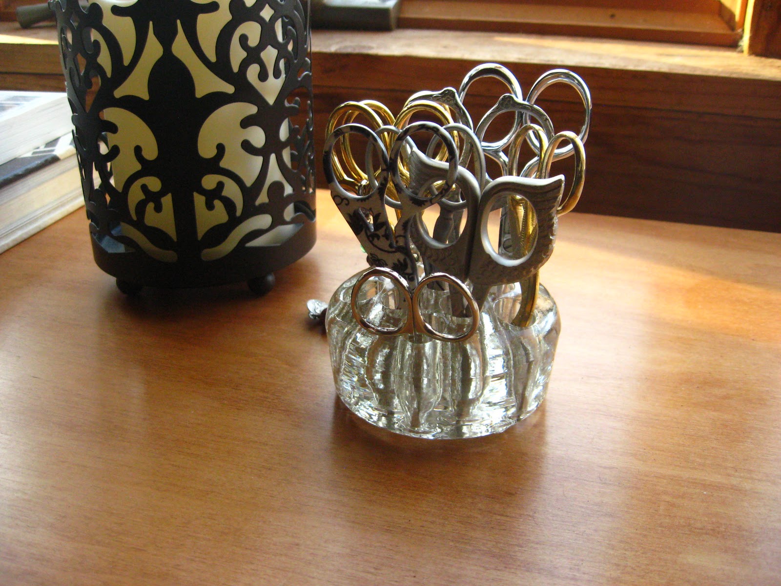 And there were a couple of surprises! Our Linda had been antique shopping and found us these wonderful scissor frogs! Now my scissors can live in beauty. They were getting tired of the suppository mold. Isn't it pretty?